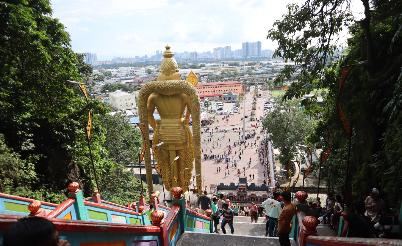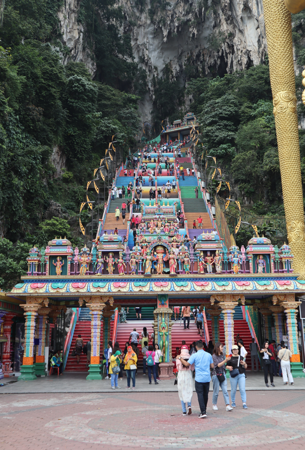 Batu Caves memiliki daya tarik utama, yaitu patung emas raksasa Lord Murugan di pintu masuk. Patung ini merupakan patung tertinggi jenisnya di dunia, dengan tinggi 42,7 meter. Untuk mencapai ke kuil tersebut, kamu harus menaiki 272 anak tangga.