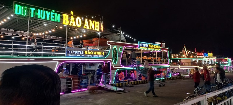 Tak lama kemudian, kapal yang diterangi cahaya lampu warna-warni mulai bergerak membawa penumpang berkeliling sungai dengan durasi 60 menit atau satu jam.